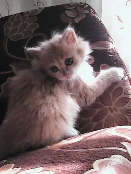 Отдам котенка (мальчика) в хорошие руки! Мальчику еще нет 2 месяцев, игривый, пушистый, в туалет ходит, ест сам и всё, глаза зелено - голубые, откликается на имя Кузя.