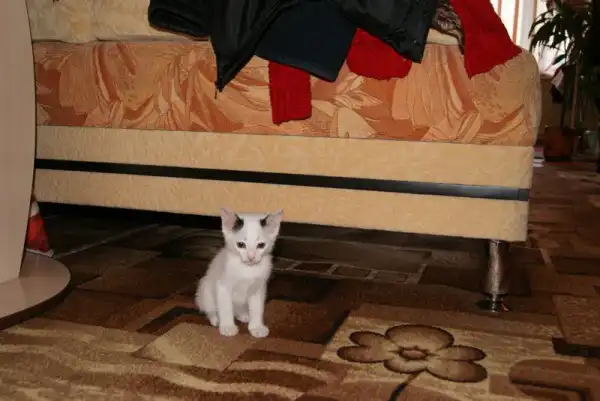 Немного грустновата, но вполне бодрая девчоночка. И горшок знает. И в еде разбирается. Она такая махонькая-что до сих пор ищет во всем мягком -кошку.