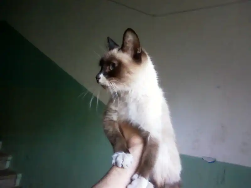 Кошка имеет все шансы превратиться в роскошную красавицу! У нее большие голубые глаза, длинные белые усы, нарядные лапки и пушистый хвост. Осталось только приютить и откормить. Несмотря на сиамский вид, она очень ласковая. Видимо, она потерялась, или выпала из окна. Сейчас очень худая, и, в прошлом будучи домашней, она не смогла научиться добывать себе еду оказавшись на улице...кошка была найдена в подъезде дома, находящегося по адресу Кирова 37 (дом, в котором находится магазин Любава)