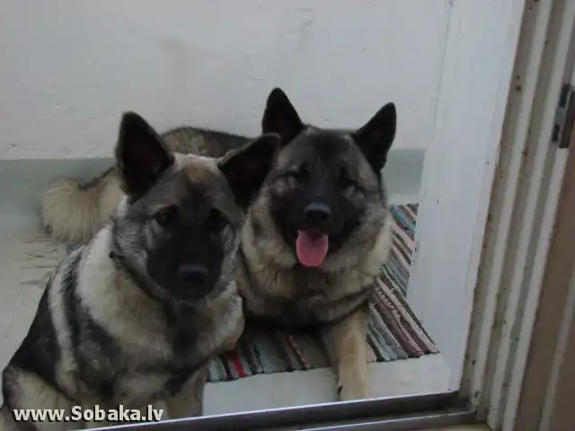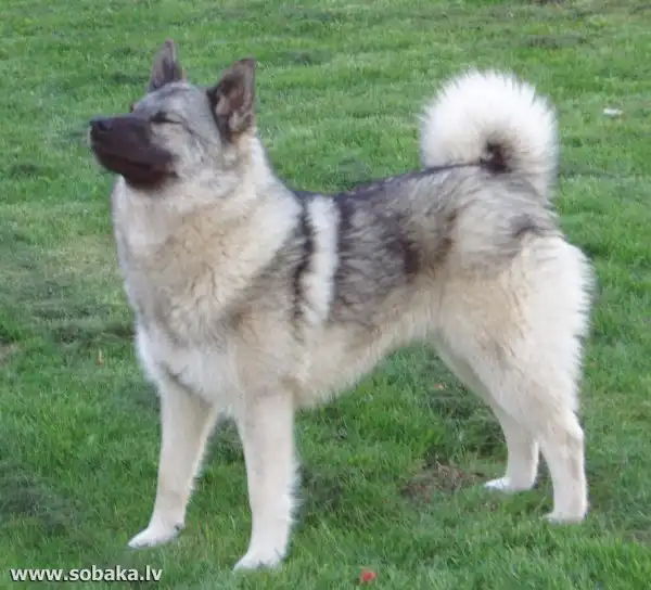 СЕРАЯ НОРВЕЖСКАЯ ЛОСИНАЯ ЛАЙКА (Серый эльгхунды). Порода Норвежский эльгхунд была выведена в Норвегии специально для охоты на лосей. Норвежский эльгхунд сильная и смелая собака без малейшего колебания бросается облаивать оленя, лося, медведя, однако с ней можно охотиться и на мелких животных. Целенаправленная работа с породой Норвежский эльгхунд началась в конце XIX века. Впервые норвежские эльгхунды участвовали в выставке в 1877 г., стандарт породы зарегистрирован в 1901 г. Имеется 2 внутрипородных типа: серый и черный эльгхунды.