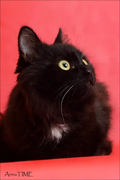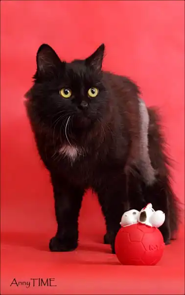 Я черный молодой отважный котенок. Когда-то я был домашним, а потом я потерялся. Но меня нашли и спасли.