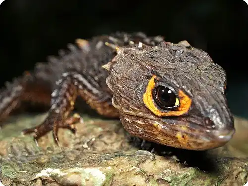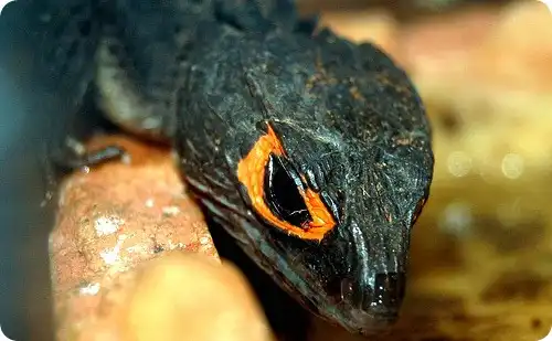 Когда крокодиловый сцинк заболевает, оранжевые ободки вокруг его глаз бледнеют.