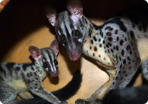 В конце января у цивет начинается брачный период, а через три месяца на свет появляются пятнистые малыши, которые, взрослея, вырастают до 57 см в длину, еще 43 см добавляется за счет хвоста.