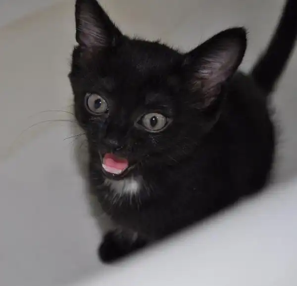 Умная, красивая кошечка. Ориентировочно 1,5 - 2 месяца. Совсем кроха и уже без дома. Сидела и громко голосила на дереве, не услышать её было не возможно.