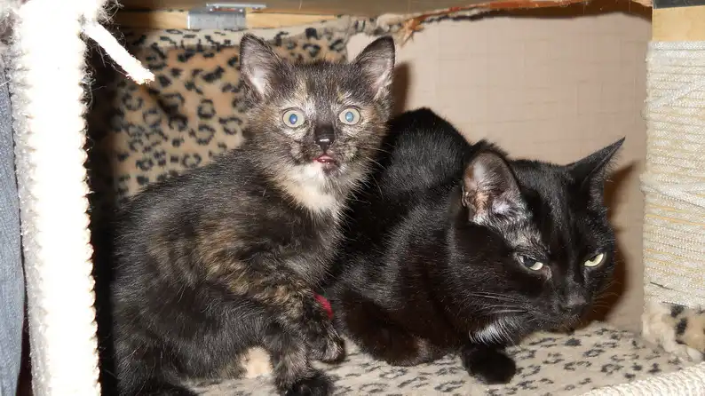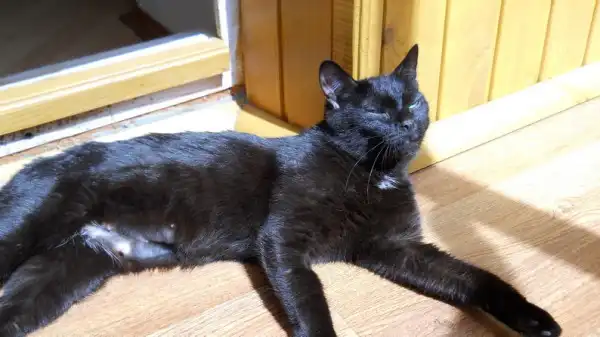 В подъезде была найдена красивая кошка черного окраса с маленькой