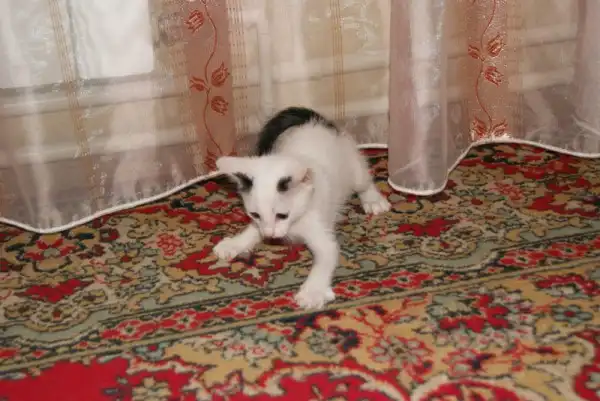 Немного была грустновата, но вполне бодрая девчоночка. И горшок знает. И в еде разбирается. Очень понятливая, сейчас веселенькая, здорова. Находит общий язык с др.животными. Умница.