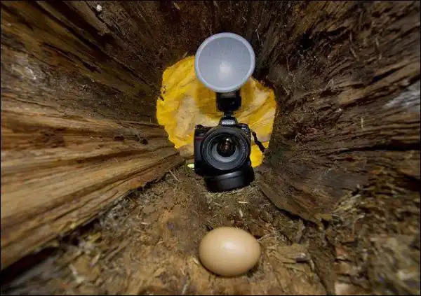 Однажды фотограф Horst Jegen заметил, что у его кота кто-то ворует еду. Тогда он решил подстеречь воришку.Для этого была сделана сложная ловушка с кнопкой и фотокамерой. Яйцо послужило приманкой.И вот результат – наглая рыжая морда поймана на месте преступления.