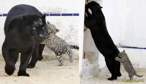 это не ягуар, а леопадр, и, да будет вам известно, пантера вполне может родить леопарда, т.к. это один и тот же зверь
