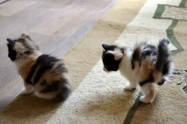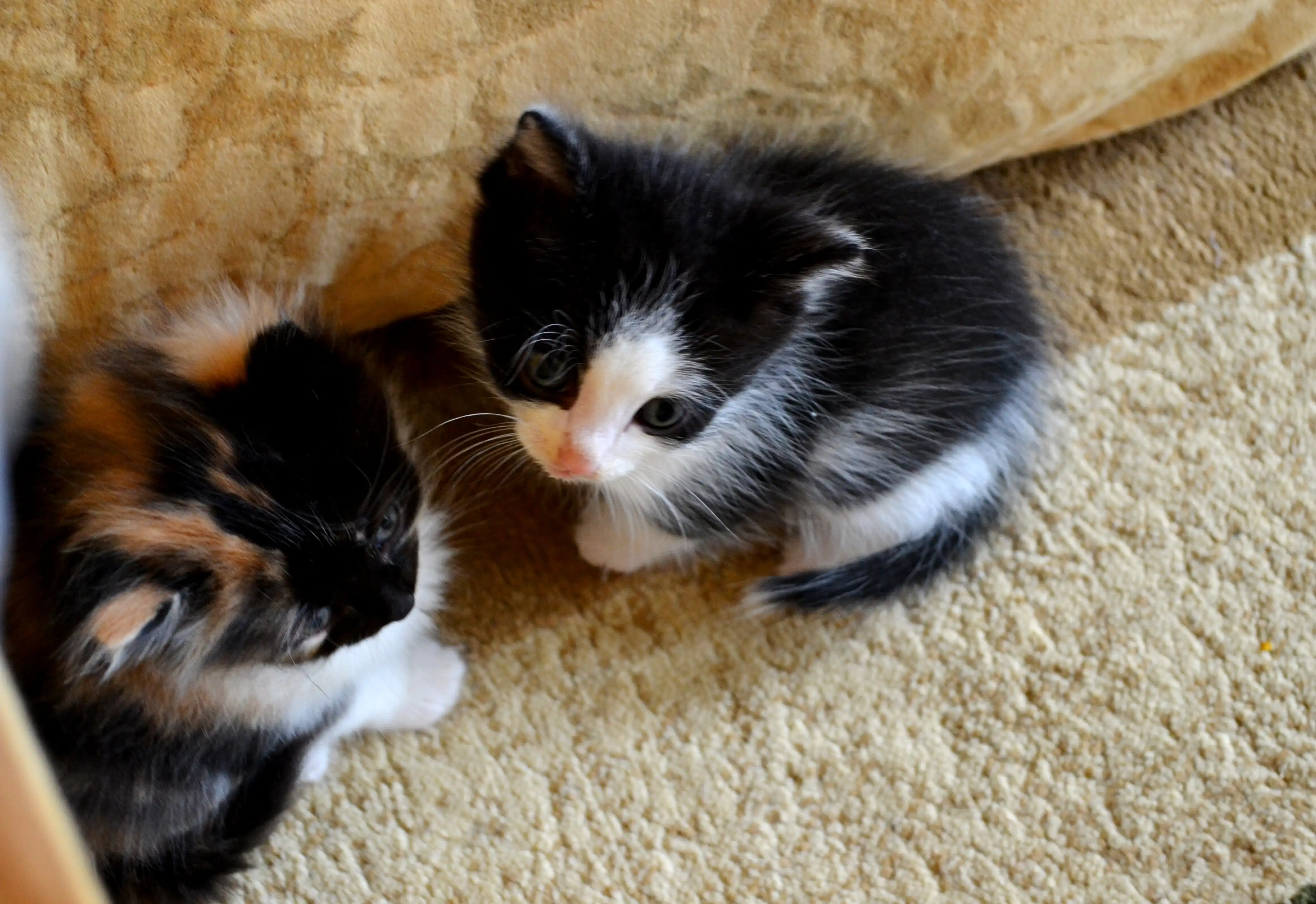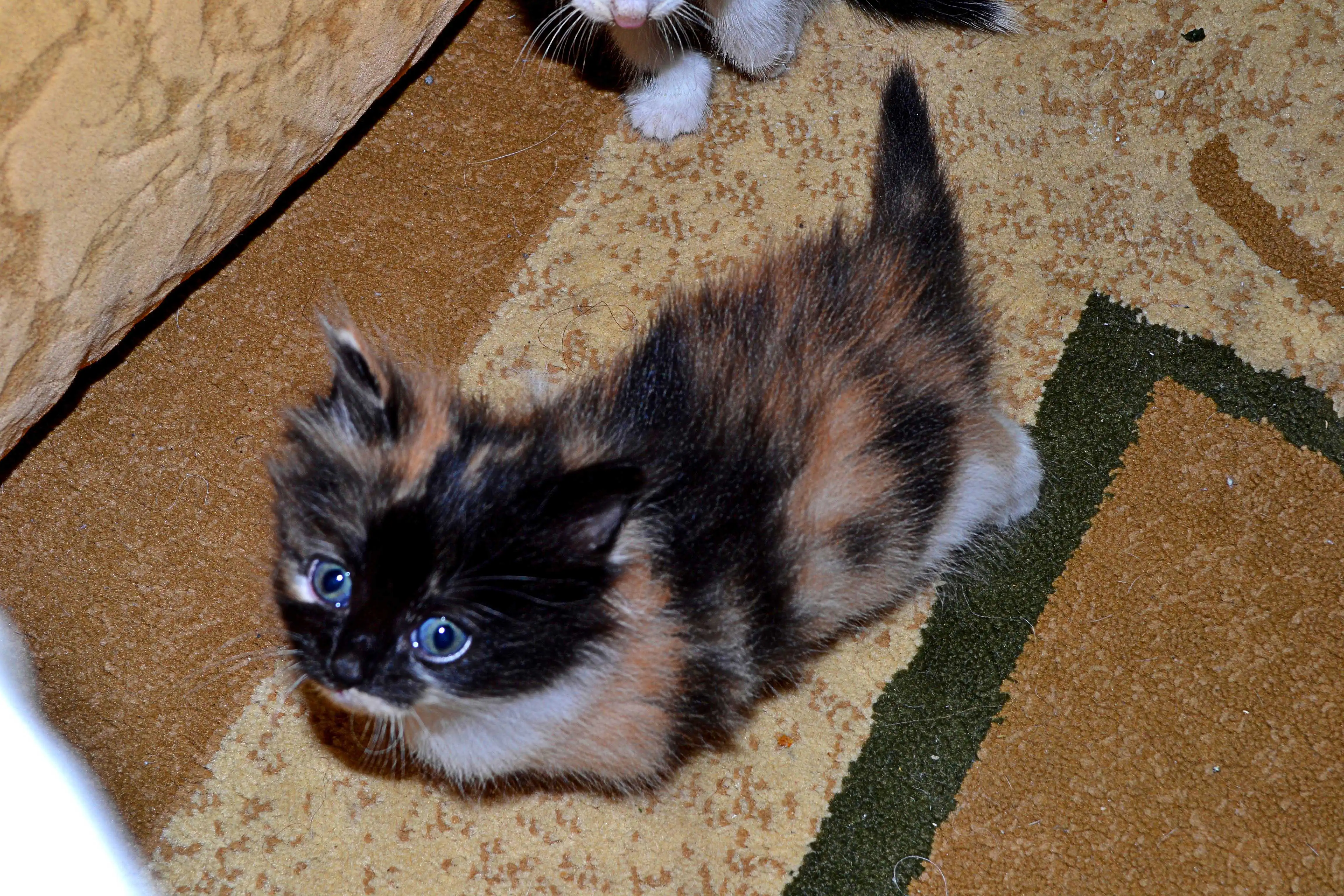 Четыре девченки - две черепахового окраса и две белые, как мама.