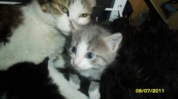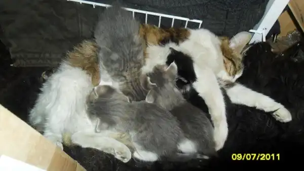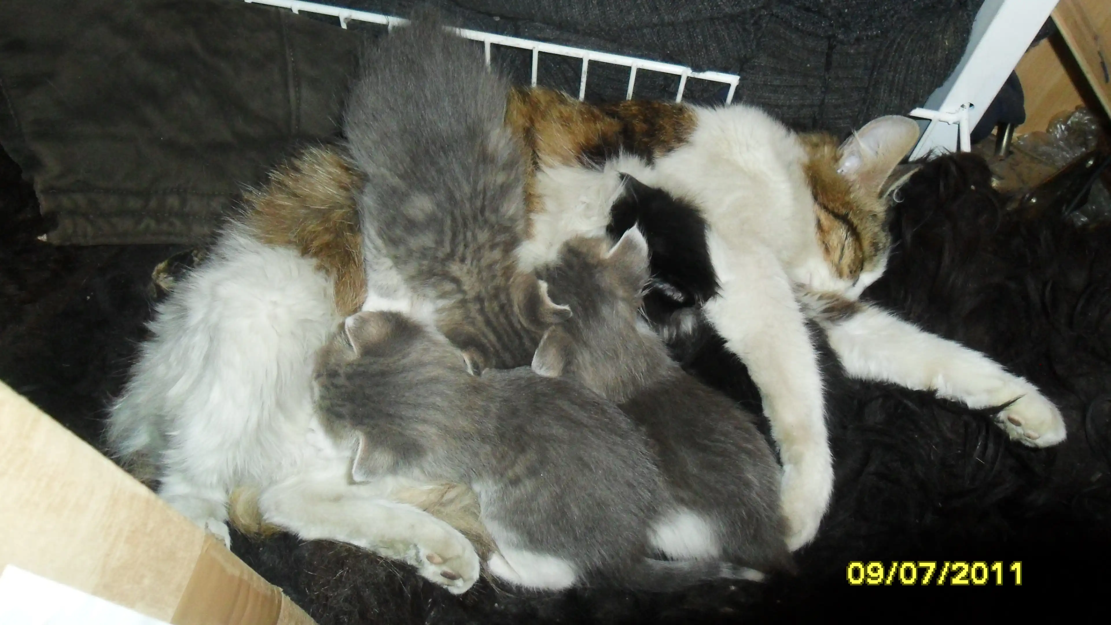 На конечной маршрутных автобусов жила кошка. Кто как мог её подкармливал. Стали её подкармливать и в магазине, куда она стала приходить на завтрак, обед и ужин. А через две недели она принесла в зубах котёнка. Затем второго, третьего и четвёртого(три мальчика и девчушка). Так она нашла своим котятам дом. На тот момент у малышей уже были открыты глазки. Видно родила она их на улице, среди железного хлама. Добрые продавцы пожалели кошку с котятами и временно приютили их. Кошка умница, котята забавные. Очень надеемся, что они найдут своих любящих хозяев. Возможно и сама мама - кошка кого-то не оставит равнодушным и ей тоже в этой суровой жизни повезет.