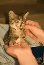В мой подъезд подкинули крошечного котёнка. Возраст – около месяца(+/-).