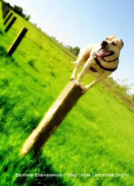 Трета мы купили с другом в 2006 году на местном зеленом рынке. Трет – американский стаффордширский терьер, живет он у нас дома и считается членом семьи, очень умный и способный. Тягу к спорту стал проявлять с полугода, но тренироваться Трет начал после года. Архитектура нашего города способствовала ему приобрести навыки прохождения препятствий, причем инициатива исходила от Трета. Мы лишь направили Трета в нужное русло чтобы показать людям, что истинное назначение этой породы в спорте, а не в боях.