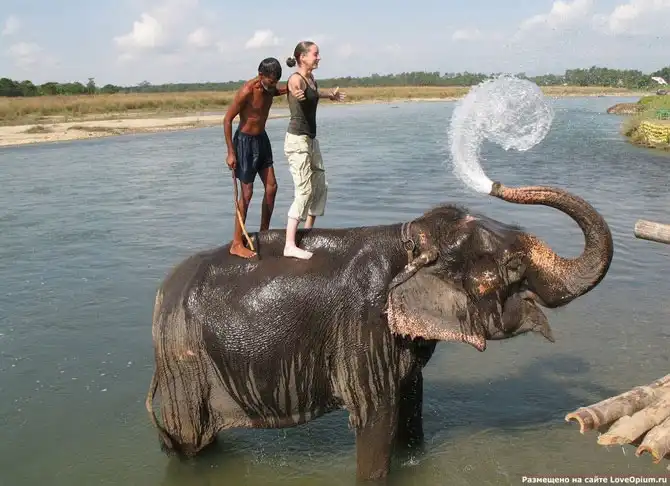 Купание со слонами — еще одной популярное развлечение для туристов в Читване: