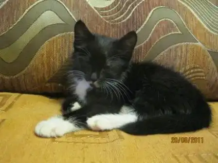 Отдадим ласковую и игривую девочку-котёнка, С ЛОТКОМ, НАПОЛНИТЕЛЕМ, МИСКОЙ И КОРМОМ! возраст 2 месяца, цвет - чёрный, подбородок, носочки и пузико беленькие :) ветеринаром осмотрена, от блох вылечена, к лотку приучена, пока ест влажный корм (по совету ветеринара). Игривая,ручная, разговорчивая, очень ласковая, и вообще очень сообразительная девчушка :). Себе оставить не можем, т.к. уже есть кот, который её не принимает, гнобит и кусает постоянно! телефон 8 952 891 63 69, меня зовут Ксения.
