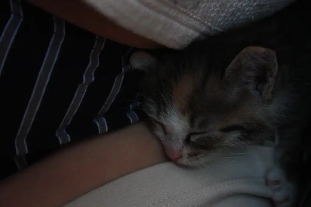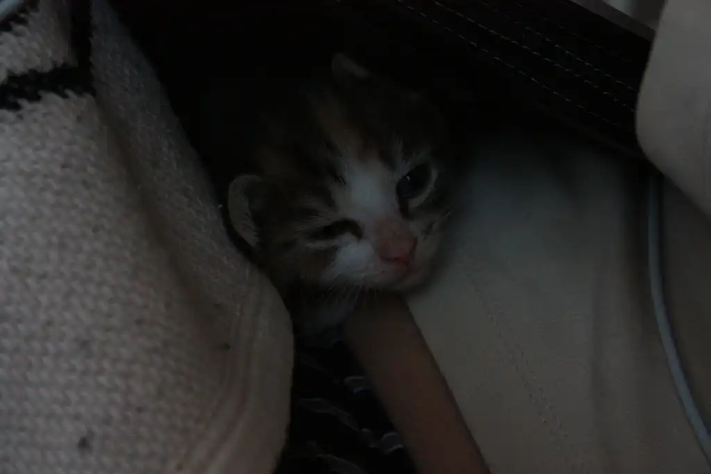 На улице нашли коробку с 4-мя котятами. По возможности взяли только одного.