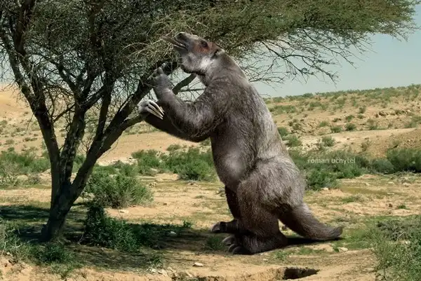 Гигантские ленивцы — группа нескольких различных видов ленивцев, отличавшихся особо крупными размерами. Они возникли в олигоцене около 35 млн. лет назад и обитали на Америкнских континентах, достигая веса в несколько тонн и высоты в 6 м. В отличие от современных ленивцев жили не на деревьях, а на земле. Это были неуклюжие, медлительные животные с низким узким черепом и очень небольшим объемом мозгового вещества. Несмотря на свой большой вес, животное становилось на задние ноги и, опираясь передними конечностями о ствол дерева, доставало сочные листья. Листья не были единственной пищей этих животных. Они питались также злаками, и, возможно, не брезговали падалью. Люди заселили американский континент в период от 30 до 10 тысяч лет назад, а последние гигантские ленивцы исчезли на материке около 10 тысяч лет назад. Это наводит на предположение, что на этих животных велась охота. Вероятно, они были лёгкой добычей, так как подобно их современным родственникам передвигались весьма медленно