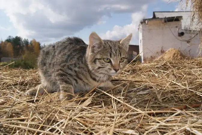 Мальчишка очень пушистый, ходячий ком, шерсть мягкая, красивая и по цвету, и на внешность. полосатая (девочка) - вдумчивая что ли, но внимание тоже любит, хоть более сдержана. Обе игривые.Есть еще полосатик,пол не знаю.. Та совсем трусишка,шныряют под копытами быков,,вздрагивают от взмаха руки..