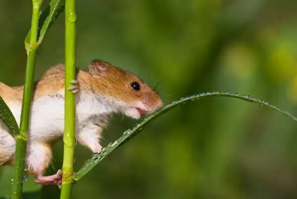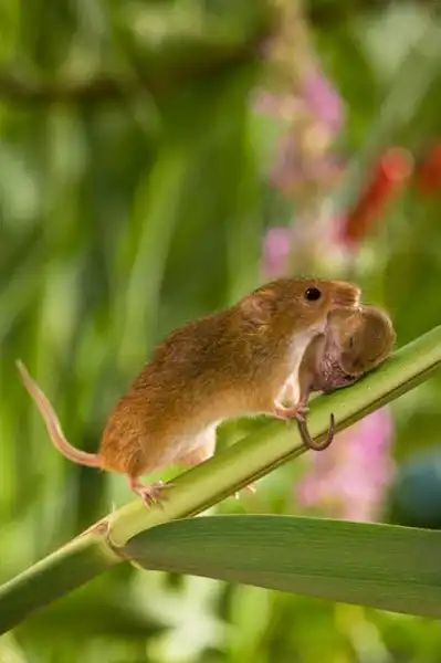Мышь-малютка – самый маленький грызун в Европе. Взрослая особь может весить всего 4 грамма. На фото: молодая мышь-малютка на колоске пшеницы.