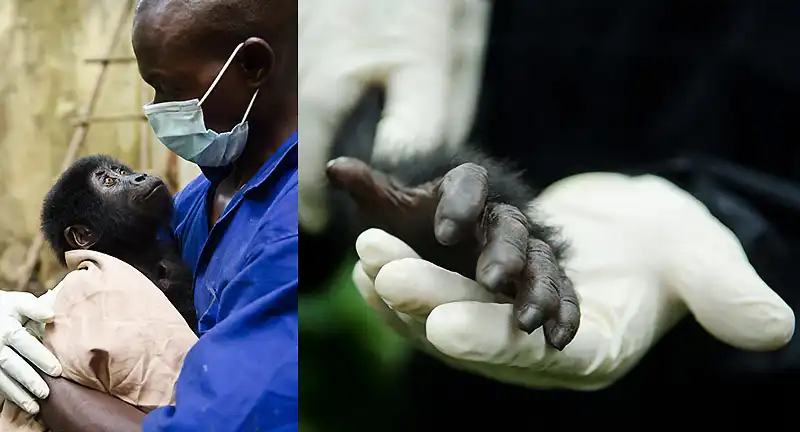 Команда рейнджеров заповедника Конго спасла детеныша гориллы, которого переправляли потенциальным покупателям в городе Кирумба.