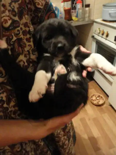 Два черно белых щенка. Мальчики. 1 месяц. Пушистые, будут среднего размера.