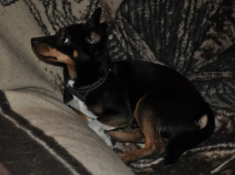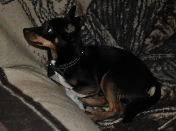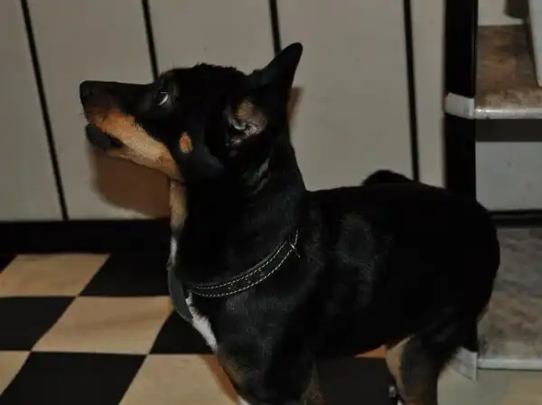 Помесь карликового пинчера, или терьера, мальчик около года.