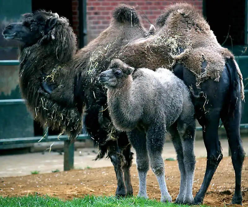 Детеныш двугорбого верблюда по кличке Генгис с мамой Эдиной в зоопарке Атерстона. (AP Photo/Simon Dawson)