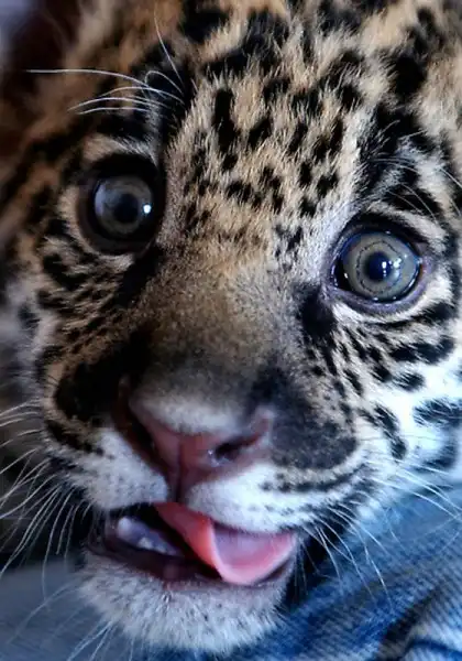 Детеныш ягуара по кличке Пятнышко в зоопарке Афин. Ягуар весом 4,5 кг родился в зоопарке в Германии. (AP Photo/Thanassis Stavrakis)