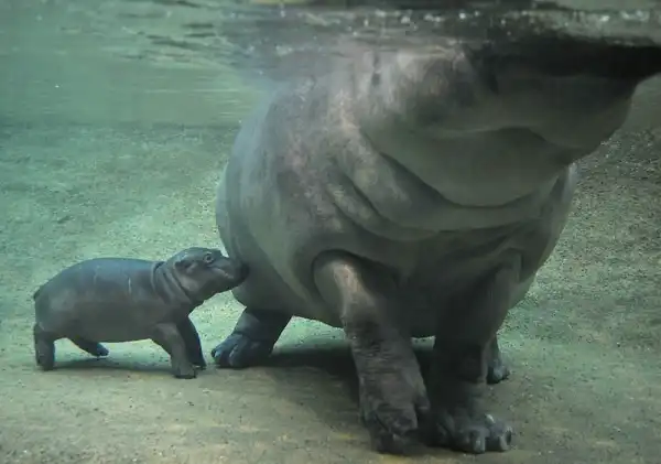 Детеныш гиппопотама со своей мамой Кати в зоопарке Берлина. (MICHAEL KAPPELER/AFP/Getty Images)