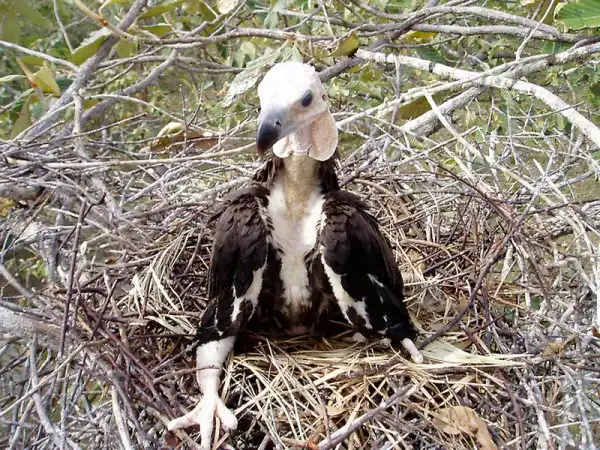 Птенец бенгальского грифа в провинции Преа, в 245 км к северу от Пномпеня, Камбоджи. Восемь особей этого редкого вида птицы были найдены мертвыми в джунглях Камбоджи – они питались мясом отравленного буйвола и собаки. (AP Photo/Wildlife Conservation Society)