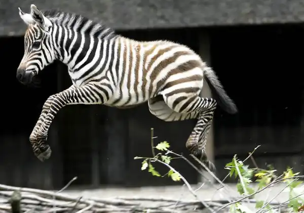 Детеныш зебры в своем вольере в зоопарке немецкого города Вупперталь. (SASCHA SCHUERMANN/AFP/Getty Images)