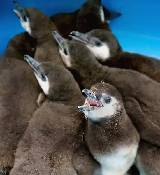 Детеныши пингвина в ожидании своего первого осмотра в зоопарке Сан-Франциско. (AP Photo/San Francisco Chronicle, Deanne Fitzmaurice)