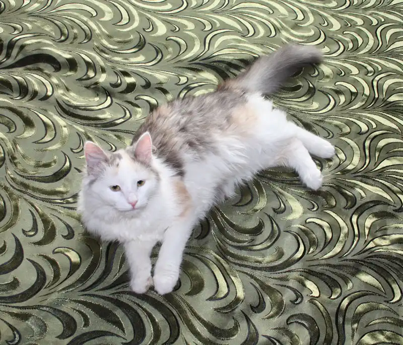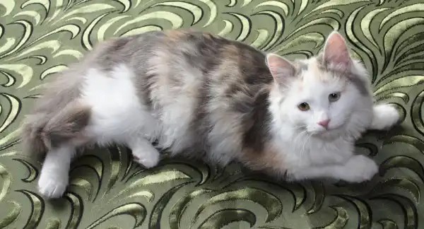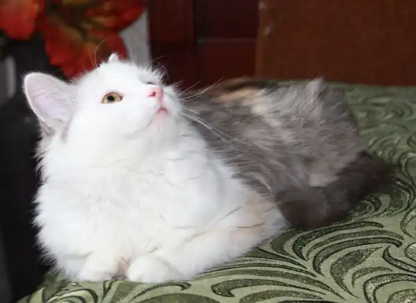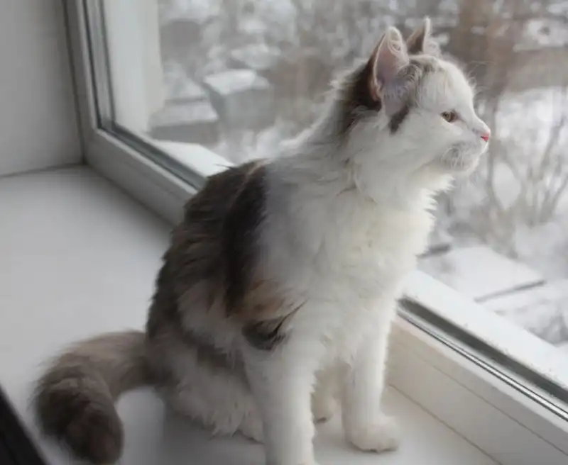 Эта пушистая молодая кошечка (ей не больше 6 месяцев) была найдена на крыльце здания, она сидела съежившись и дрожала. Сейчас она отмыта и накормлена. Она ходит в лоток, и прекрасно ладит с другими животными, но ей нужен постоянный дом и любящий хозяин. Хозяин, отзовись!