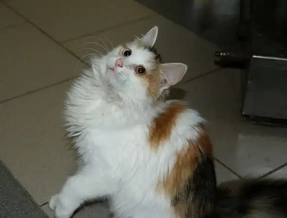 Пушистый котенок(5 мес) - трехцветная девочка с очень выразительной мордочкой и разноцветными глазами. Ловкая, веселая и очень игривая, ручная,компанейская и воспитанная. Лоток освоен. Питание - сушка. Несмотря на то, что она была кем-то брошена - любит людей и скучает по ним, поэтому когда видит рядом человека/слышит, что её зовут - бежит быстро-быстро, мяукая, к Вам, хочет быть рядом. Как бы крепко она любила своего постоянного человека/семью...
