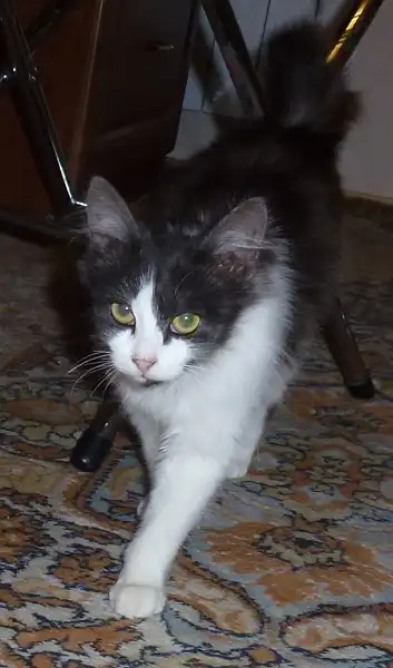 Его зовут Том, потому что напоминает одноимённого героя из "Тома и Джерри". Ему 4 месяца. Очень спокойный, но любит играть с котятами и игрушками; всеядный, кушает аккуратно, ласковый, но ненавязчивый. Почти не мяукает (молчаливый характер), зато часто мурчит. Нежная пушистая шёрстка у него всегда чистая, котик аккуратист и чистоплотный. Полностью здоров, лотком пользуется безукоризненно.