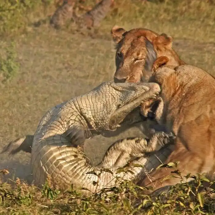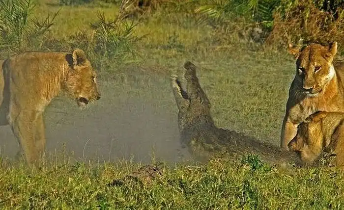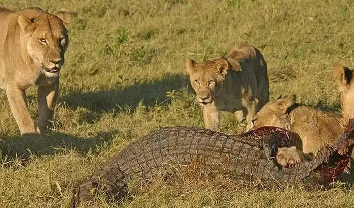 Львицы были на чеку и бедному аллигатору непоздоровилось.