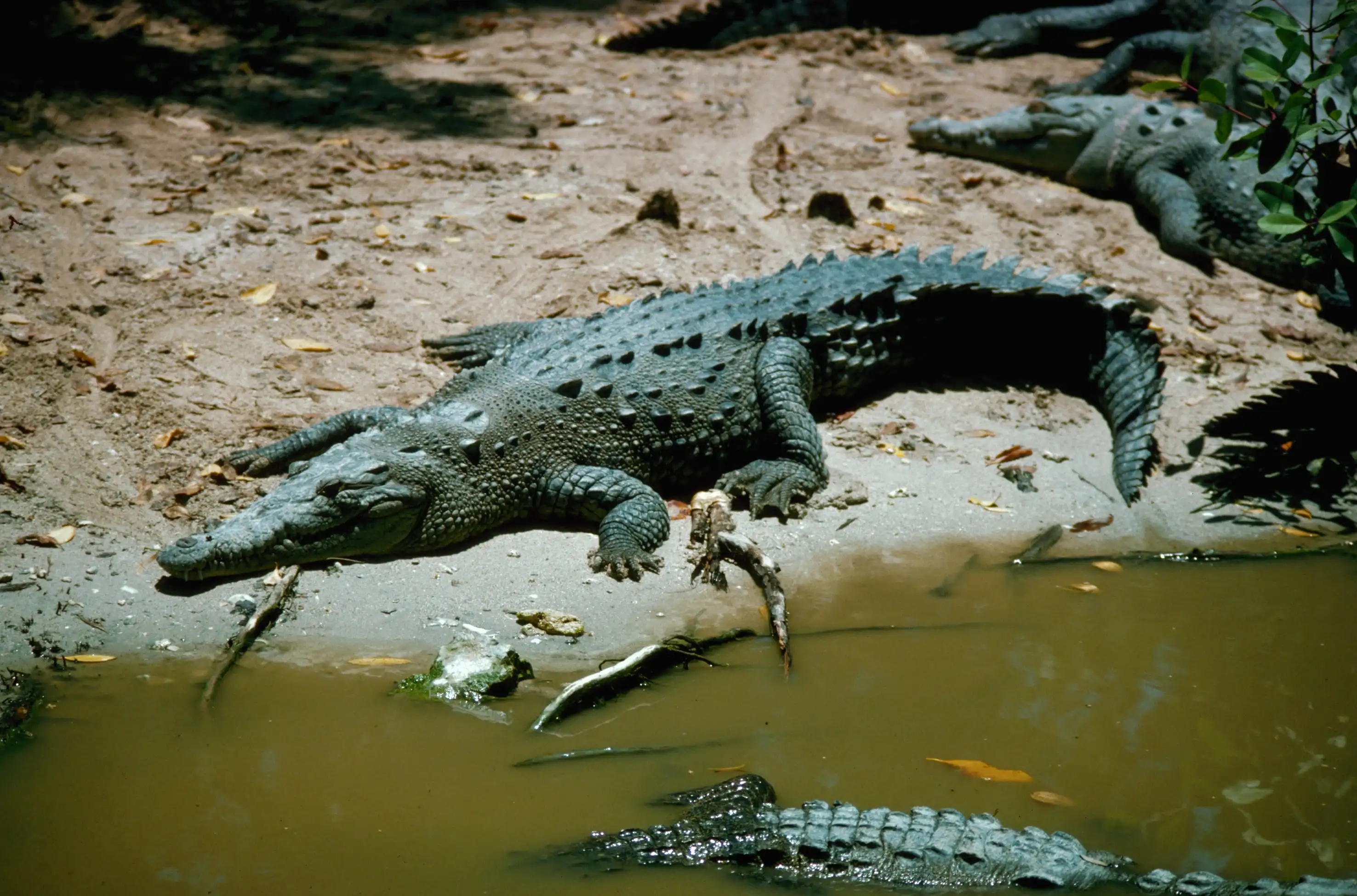 Большую часть суток крокодилы проводят в воде. На прибрежные отмели они выходят утром и ближе к вечеру, чтобы принять «солнечные ванны».