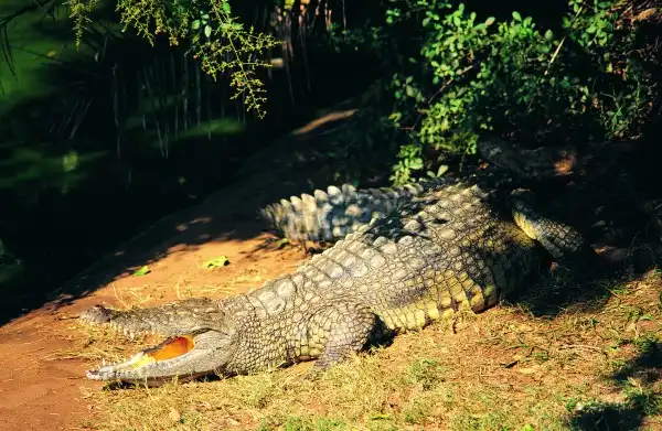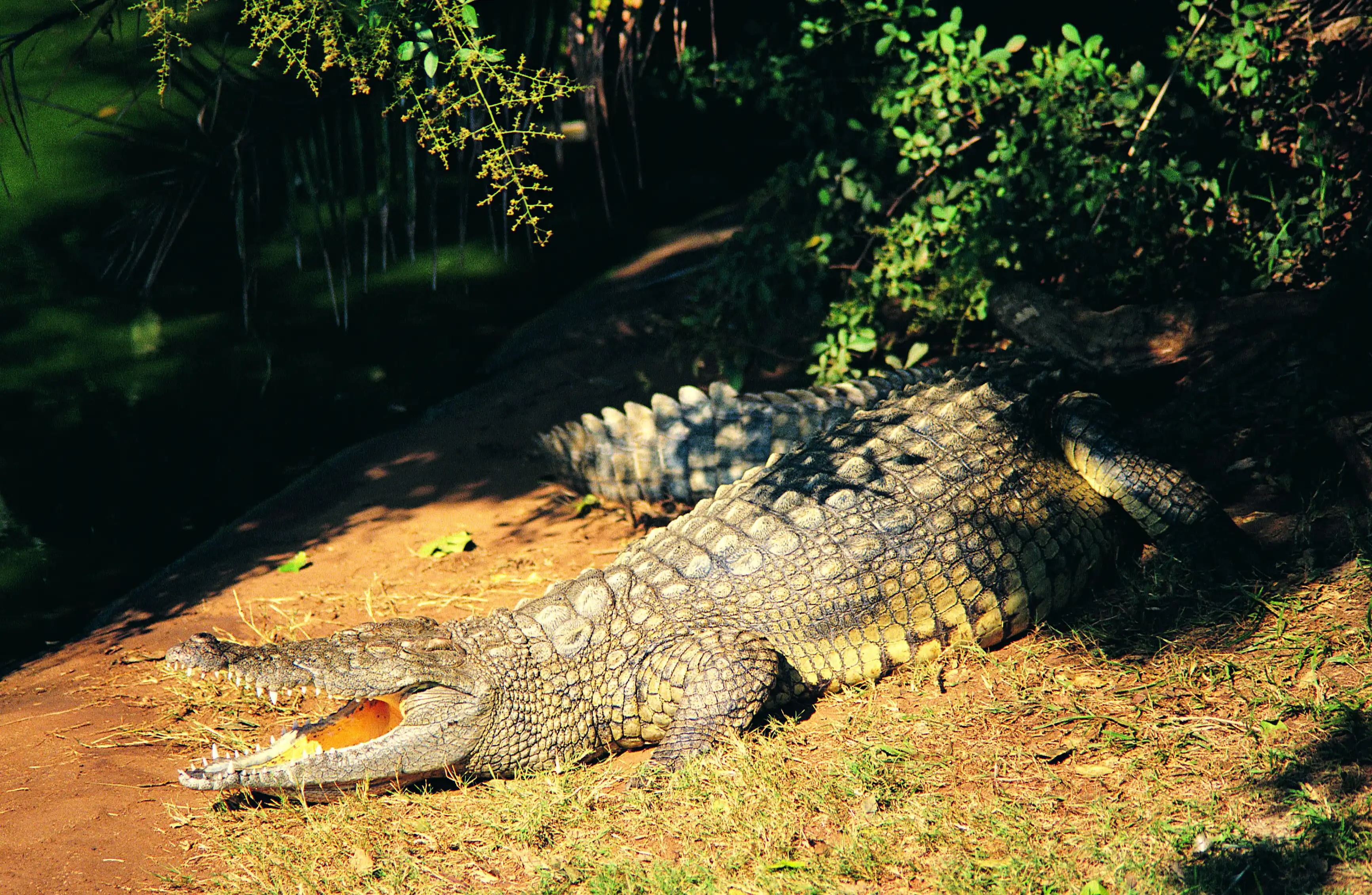 Для охлаждения крокодил открывает рот, и вода испаряется изо рта; одновременно мелкие птицы склёвывают у него из пасти застрявшие кусочки мяса и пиявок.