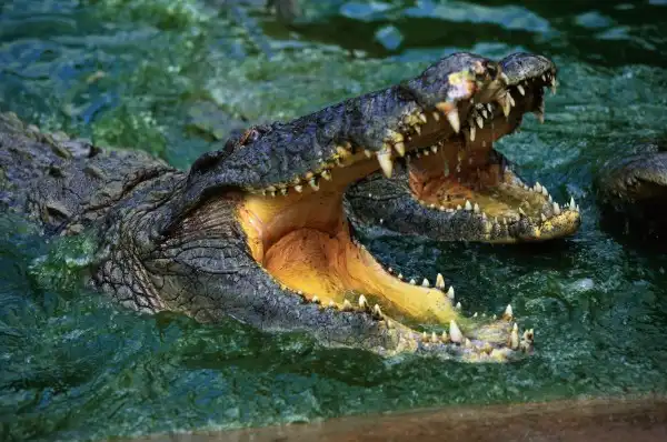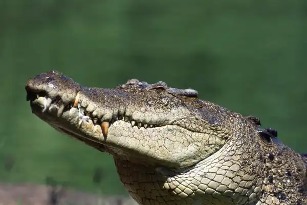 Также их можно отличить по форме морды: у настоящего крокодила морда острая, V-образная, у аллигатора — тупая, U-образная.