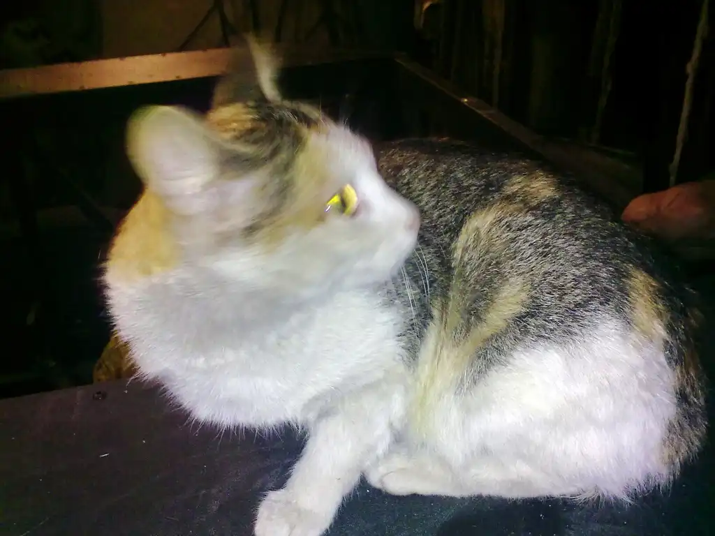 Прибилась к отцу в гараж, очень ласковая, скорее всего в прошлом была домашняя, т.к. на контакт с людьми идет охотно, без агрессии. Киса красивая: мягкая недлинная шерсточка, трехцветный окрас, некрупная, на вид года 4, изумительные желтые глаза!!! Очень надеемся, что найдется человек, готовый приютить бедняжку и стать надежным другом для нее! В гараже ее долго держать не получится, а на улице зима..