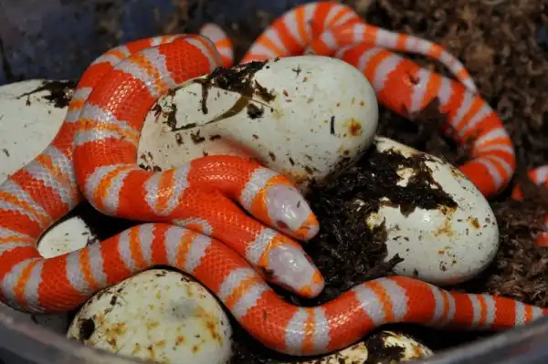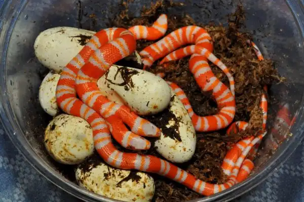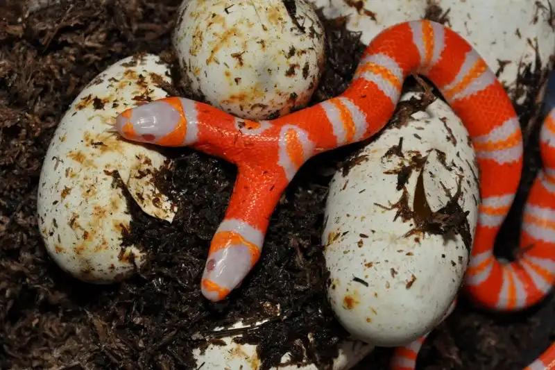 Дома у него тоже проживает множество рептилий. Одна из них, красно-черная гондурасская молочная змея, недавно отложила яйца прямо в гостиной Паркера и на днях из них вылупились детеныши. Когда Паркер полез рассматривать новорожденных, он сначала толком не понял, что именно с ними не так.