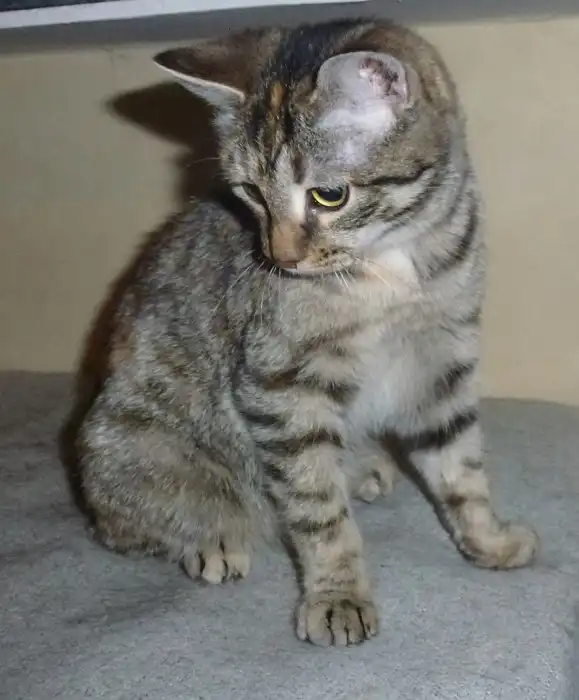 Отдам полосатую, очень-очень ласковую кошечку Рысю, около 5 месяцев от роду. Найдена под крыльцом магазина, откуда громко и жалобно просила помощи. У Рыси болела лапка, видимо, был старый ожог.Но сейчас всё хорошо. Возьмите эту красавицу в свой дом и она наполнит его своим мелодичным счастливым мурчанием, будет тереться мордочкой об щёку и обнимать за шею!