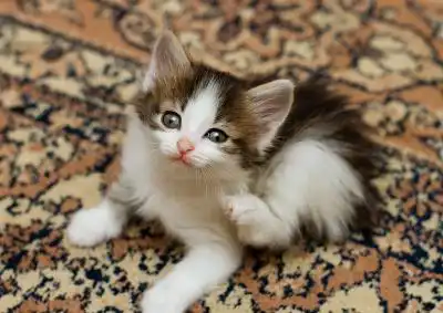 Малявы родились примерно 25 - 27 октября. Все уже научились есть из миски, но меню у них пока не как у взрослых кошек (толчонка, фарш, лапша по флотски(мелкая), котячи паштеты, вискас для котят (раздавленный), куриный суп). Все коти ходят в лоточек, но только в клетке (искать по комнате получается не у всех, а если в другой комнате с ними сидишь, то поисками лотка они себя вообще не утруждают). Серый с белым - мальчик Дыма, очень бойкий, на руки просится, но долго не сидит. Черно-белая девчушка - Миледи, очень нежное, но подвижное создание, любит посидеть на руках. Все збираются по штанинам на верх, если их добровольно на руки не берут. Очень любят людей - только в комнату зайдешь, а они уже возле ног вьются. Бегают с дочкой в догоняжки - она от них, а они за ней. С игрушками играют не очень - больше между собой.