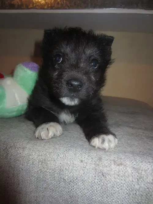 Стёпа был оставлен в ветеринарной клинике. Но мы не могли пройти мимо такого лапочки, потому что он похож на детскую игрушку! Это мальчик, ему около 1,5-2 месяцев. Щенок очень контактный, независимый. Играет сам, ночью спокойно спал. Тявкает редко. Вырастет средним, около 40-43 см. в холке.