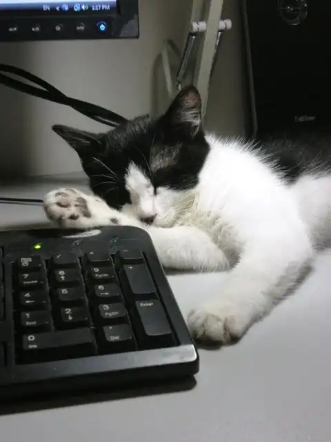 ДАВАЙТЕ! давайте сделаем пост из своих котов на клаве!!!!! у меня кот все время на буке спит)