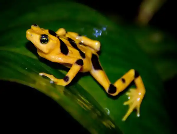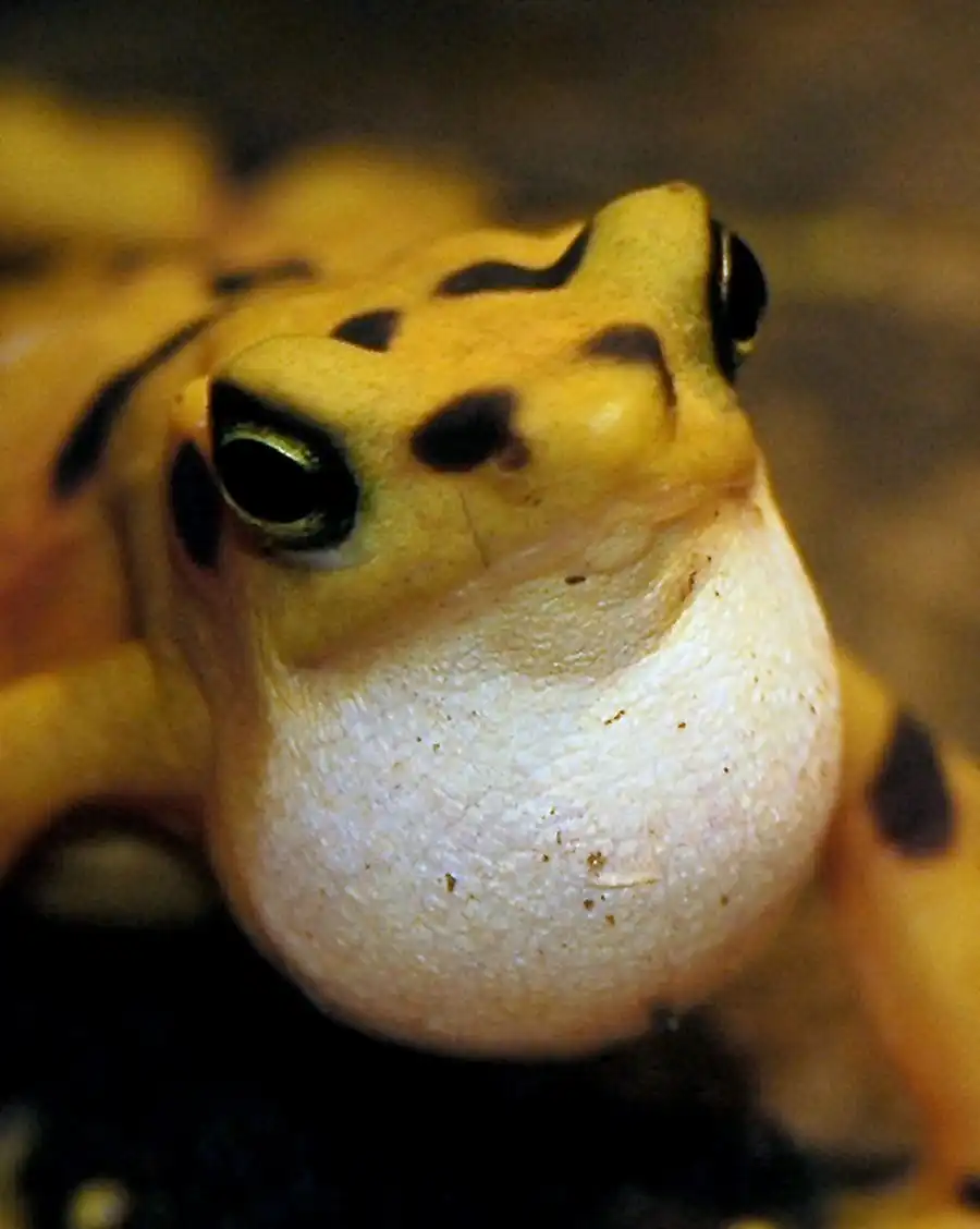 Панамская золотая лягушка (англ. Panamanian Golden Frog) крайне ядовитое земноводное, даже простое прикосновение к ней вызывает сильную аллергическую реакцию.