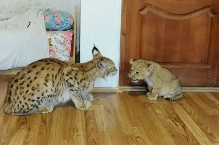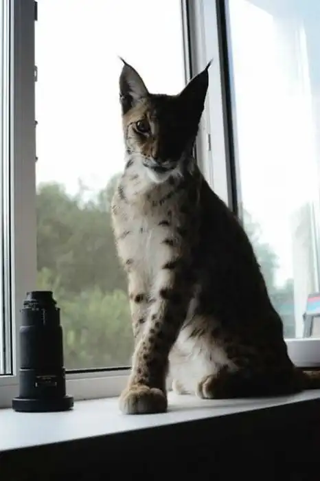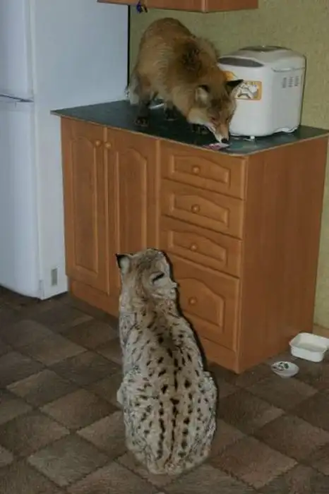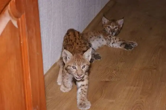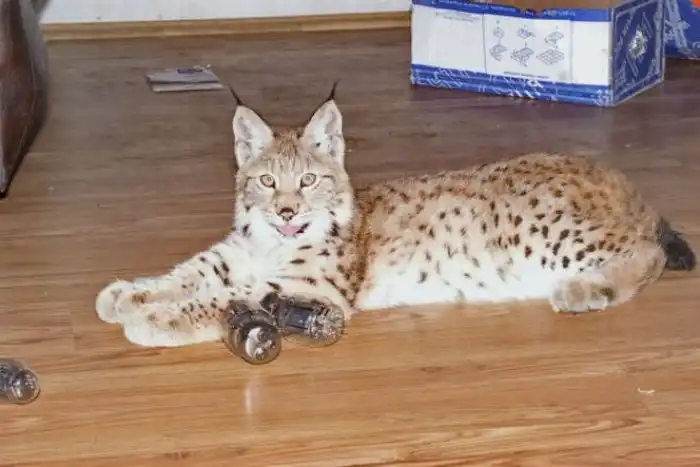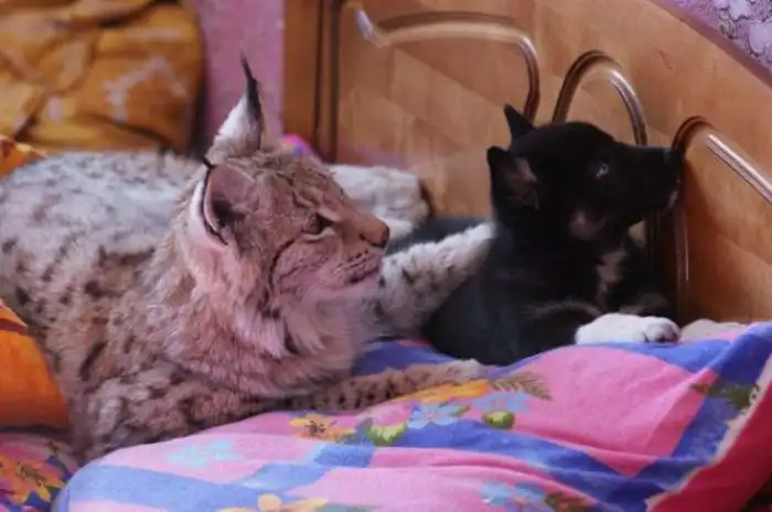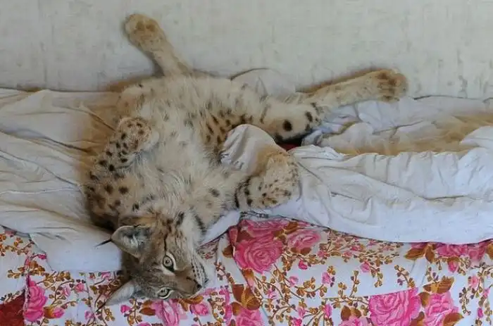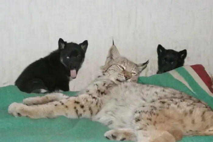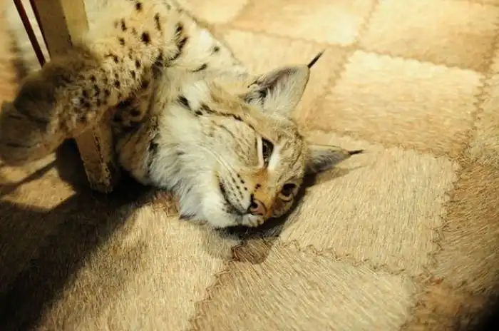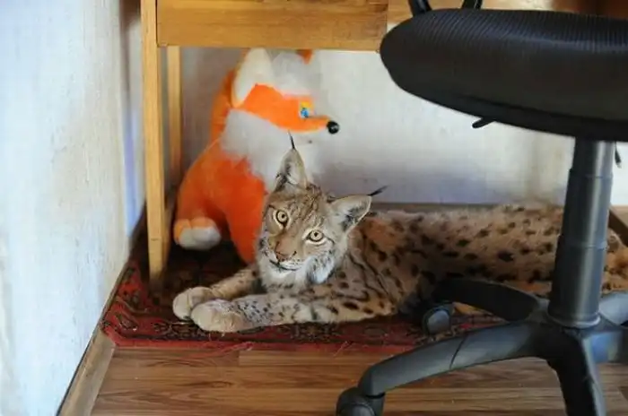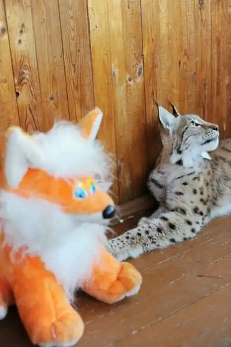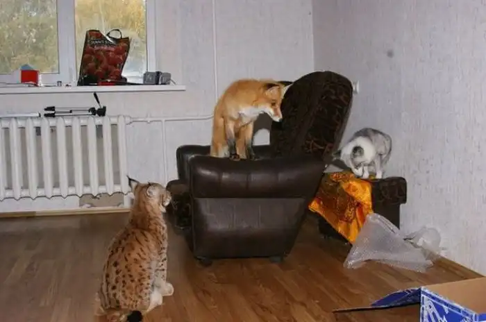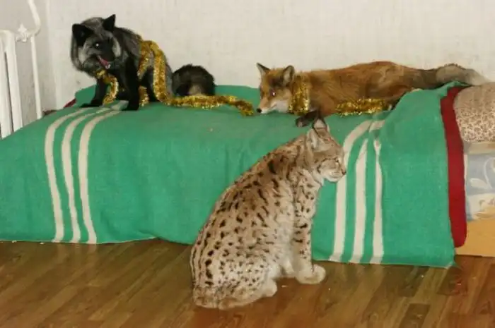 У него дома живут рысь, лисицы, норки, множество собак и даже когда-то был маленький львенок.