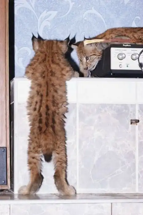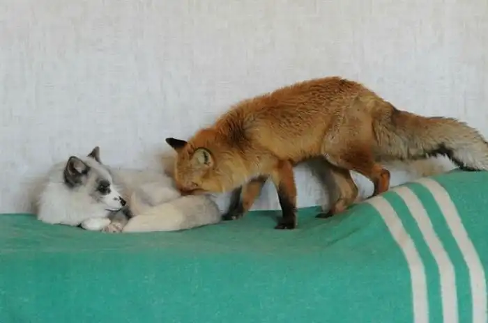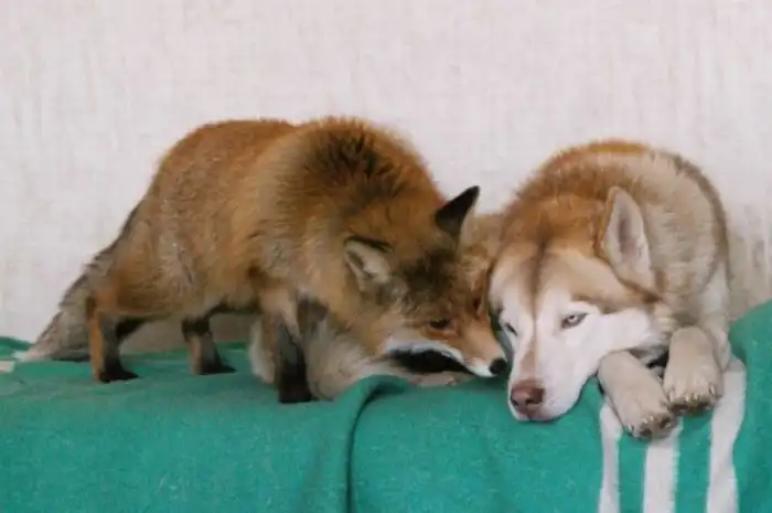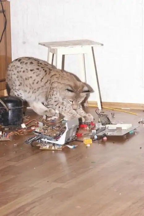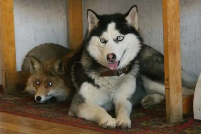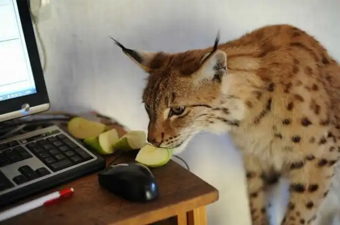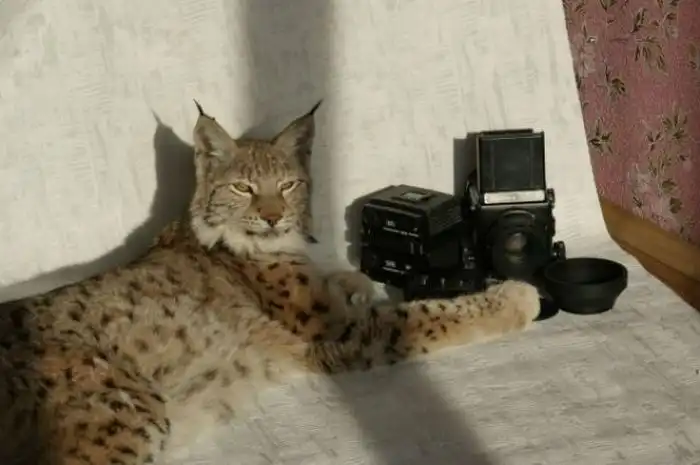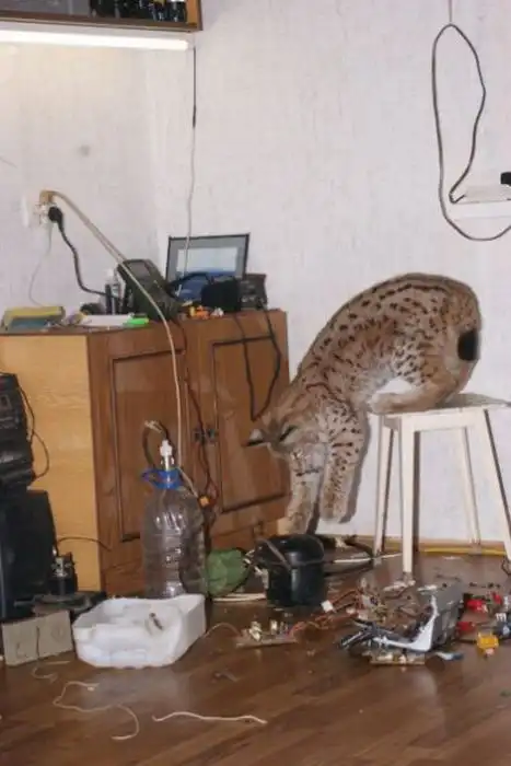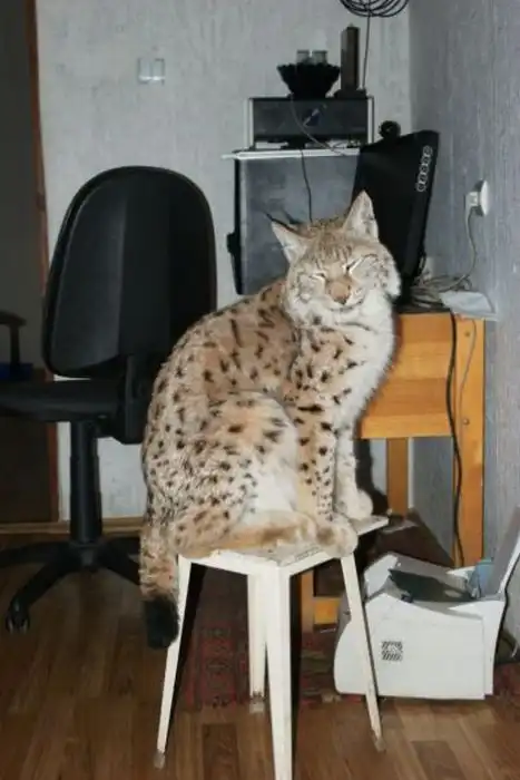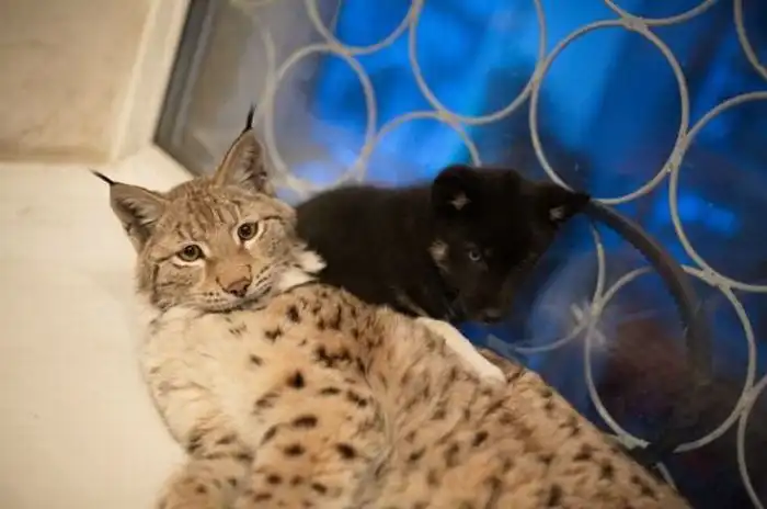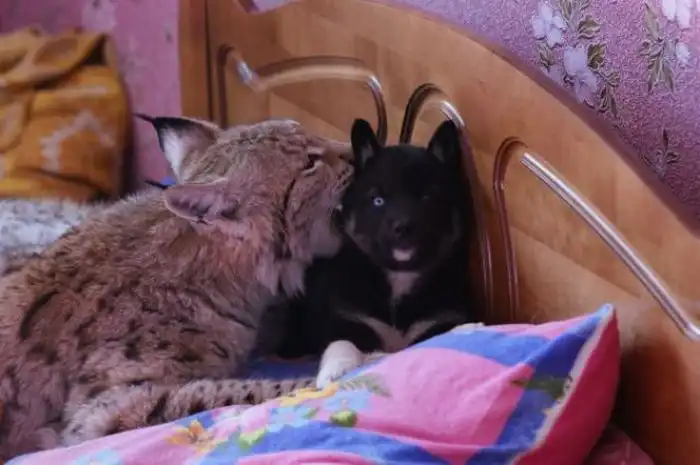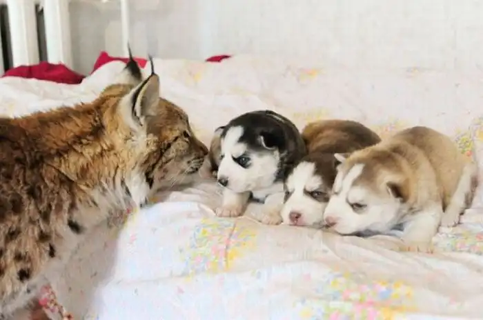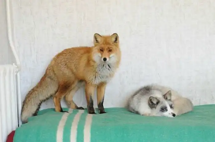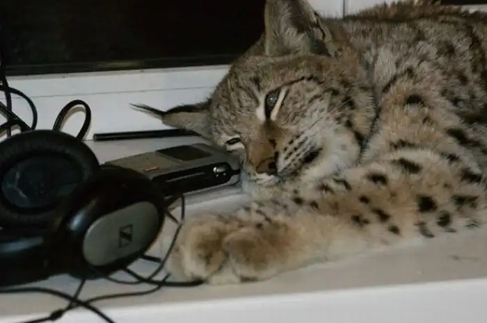 У него дома живут рысь, лисицы, норки, множество собак и даже когда-то был маленький львенок.