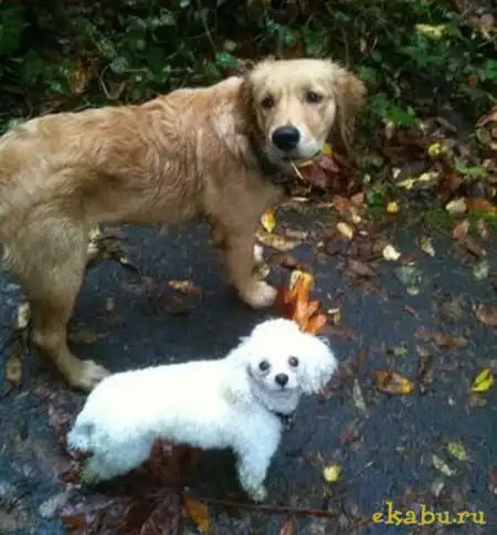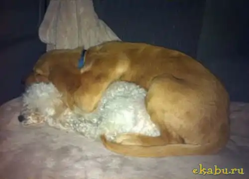 Сначала они были совершенно равны между собой. Но потом один пес обогнал другого в росте, но дружба сохранилась.