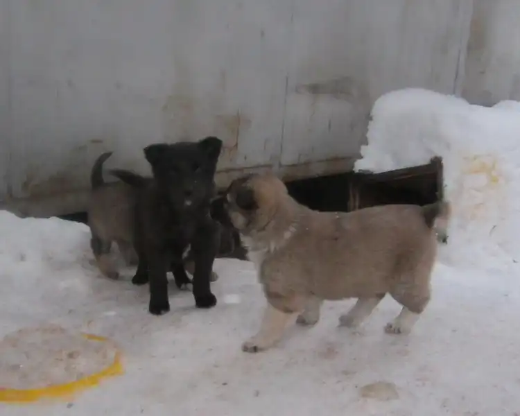 Отдам только в добрые и надежные руки 6 щенят. Щенки родились 16.12.2011г. от бездомной собаки среднего размера. Окрас у одного черный, остальные коричневые. Щенки будут ростом 55-65см.