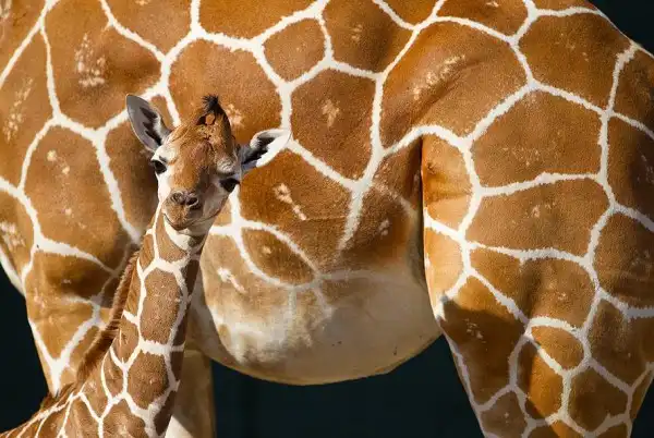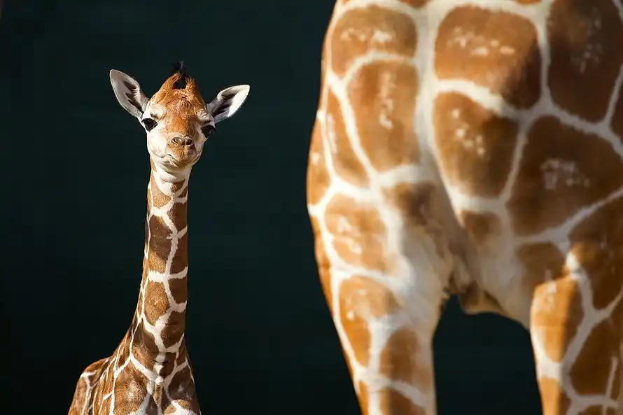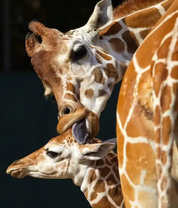 Период беременности жирафов длится около 15 месяцев, а молоком детеныш кормится примерно год.